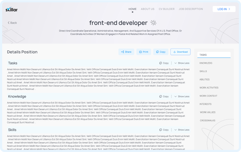 Create a CV with ease and be fully aware of job descriptions to facilitate you with Skillar